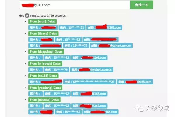 只要他曾经注册过天涯网、当当网、网易、csdn…或者曾经Q号被盗号过,有很大几率都能查到。