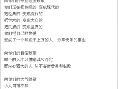 7一)后浪 B站为青年节拍的宣传片《后浪》,描述了远方旅游、飞机跳伞、漂流潜水、电子竞技、手办、轮滑、跳舞… 青春活力,满脸的胶原蛋白,让人心驰神往。 曾经的老人 认为年轻的80后娇生惯养,玩物丧志,是垮掉的一代。 结果年轻人扛起大旗,成了社会的中坚力量。 多年后,又有一批老人嘲讽90后娇生惯养,玩物丧志,离经叛道,是垮掉的一代。 结果这群年轻人不...